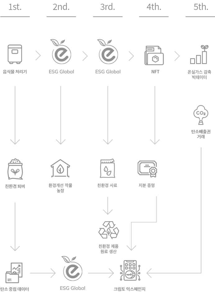 Through the carbon neutral app, we collect data that have been implemented to reduce greenhouse gas emissions in our lives and compensate and support them with ESGG. ESGG can gain exchange value through transactions between individuals as well as a variety of uses.